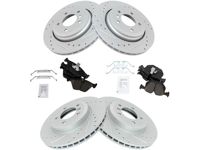 Package Contents: (2) Front Performance Brake Rotors; (2) Rear Performance Brake Rotors; (1) Front Ceramic Brake Pad Set; (1) Rear Ceramic Brake Pad Set; Brake Pad Contact Point Grease