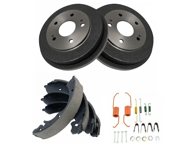 Package Contents: (1) Rear Brake Hardware Kit; (1) Rear Brake Shoe Set; (2) Rear Brake Drums