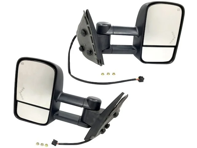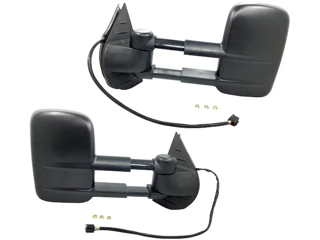 Note: (SET OF 2) Power Door Mirrors; Manual Telescopic Trailer Tow Mirror; with Heated Glass; with Turn Signal; Manual Folding; Black Textured