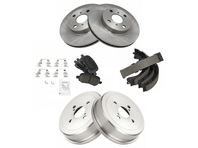 Package Contents: (2) Front Replacement Brake Rotors; (2) Rear Brake Drums; (1) Rear Brake Shoe Set; (1) Front Ceramic Brake Pad Set; Brake Pad Contact Point Grease; Brake Pad Hardware