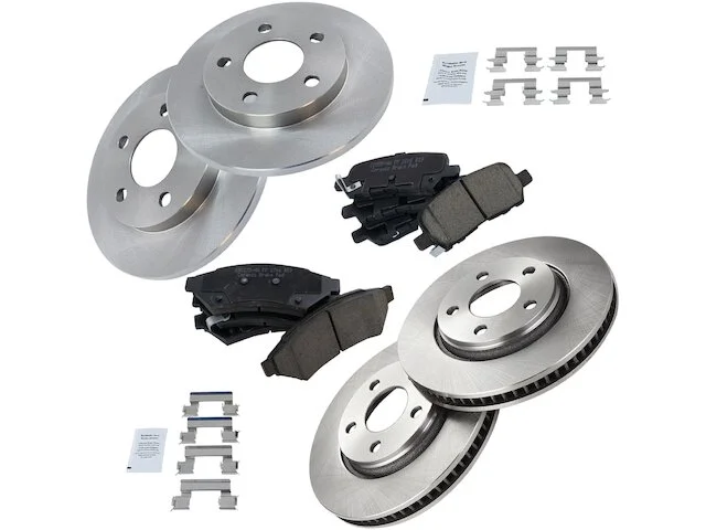 Package Contents: (2) Front Replacement Brake Rotors; (2) Rear Replacement Brake Rotors; (1) Front Ceramic Brake Pad Set; (1) Rear Ceramic Brake Pad Set; Brake Pad Contact Point Grease; Brake Pad Hardware