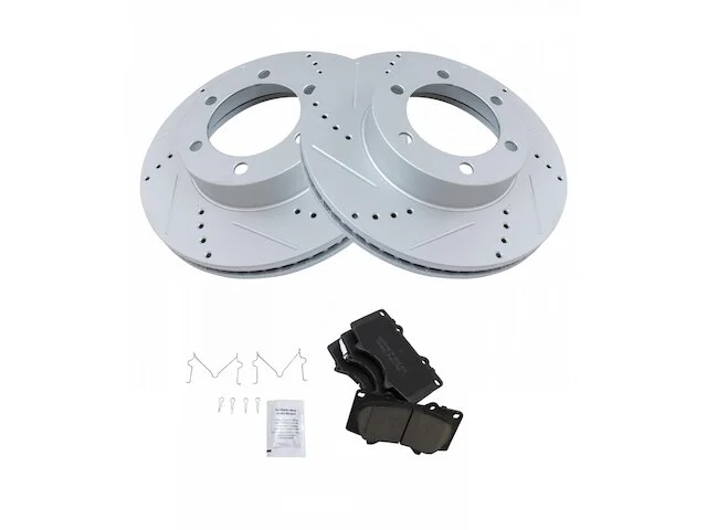 Package Contents: (2) Front Performance Brake Rotors; (1) Front Ceramic Brake Pad Set; Brake Pad Contact Point Grease; Brake Pad Hardware